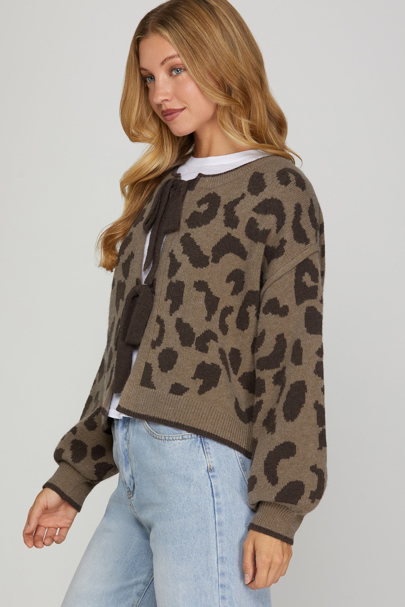 Turn up the charm with our Leopard Bow Tie Sweater Cardigan — the perfect mix of sweet and sassy! Featuring a playful leopard pattern and darling bow tie neckline, this cozy knit adds instant personality to any outfit. Soft, warm, and full of flair, it’s your new go-to for coffee dates, shopping trips, and cozy nights in.
