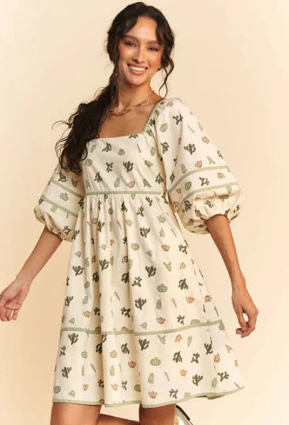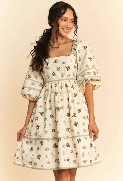 Brighten your wardrobe with the Cactus Poppy dress, featuring a fun and lively cactus print on lightweight poplin fabric. This mini dress offers a flirty, breezy fit perfect for sunny days and playful outings. Easy to style and irresistibly charming, it’s your go-to pick for adding a touch of quirky spirit to any look.