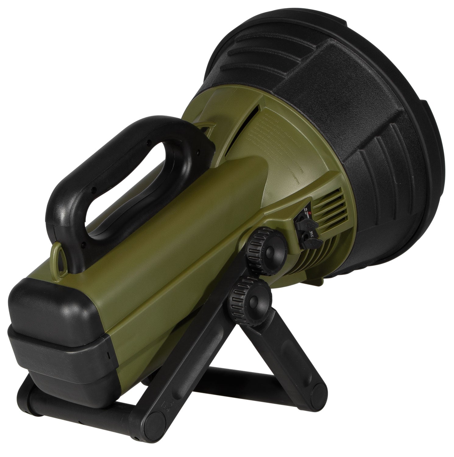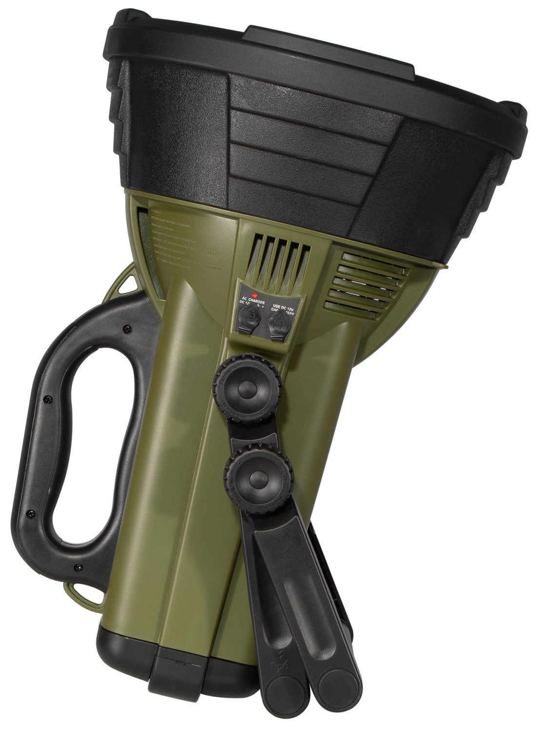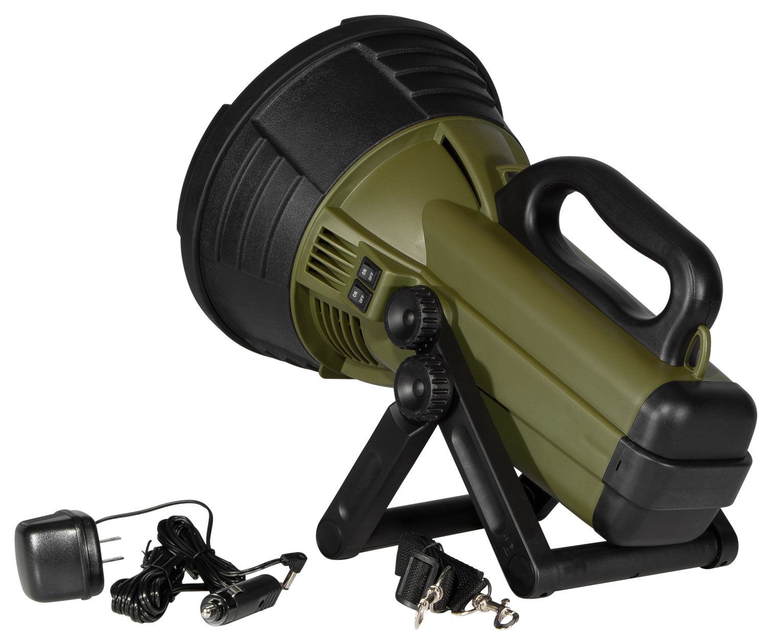 The Colossus spotlight from Cyclops features 18 million candlepower, rubberized construction w/built in top grip handle, adjustable swivel stand and dual recharge. Equipped with two 6V sealed lead acid batteries. Includes AC/DC adapter and 12V DC car plug adapter.